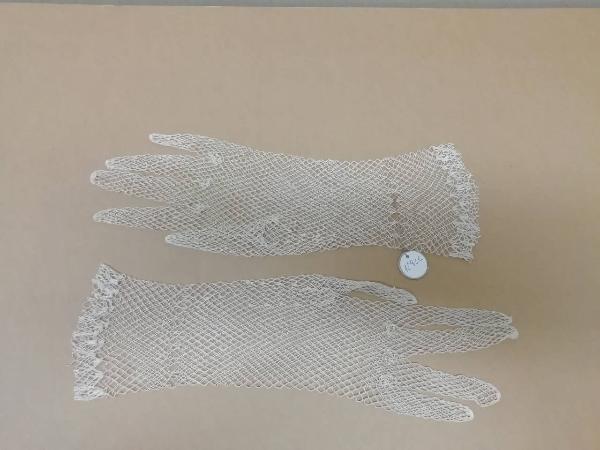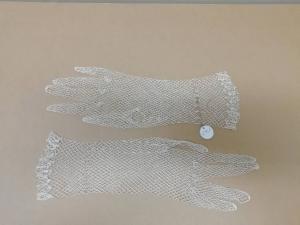 Guanti femminili in raso di seta bianco a rete, lunghi 29 cm.