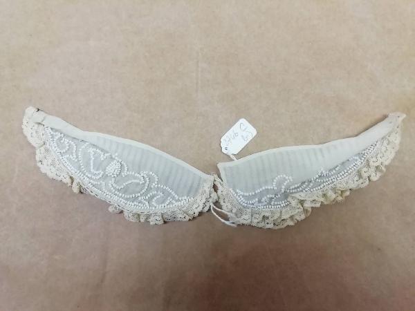 Polsino in tulle bianco con applicazioni di perline bianche. Bordo applicato centinato.