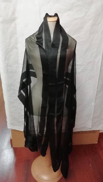 Stola da lutto in organza di seta nera con bordi operati in raso.