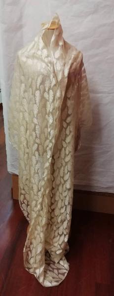Stola in seta color avorio con ricami floreali. Bordi in raso delo stesso colore.