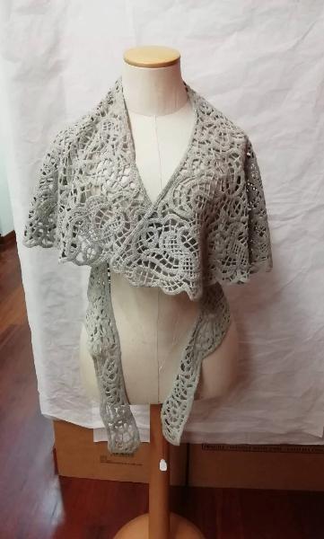 Mantellina-coprispalle in merletto chimico tipo Cantù di lana di colore grigio.