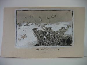 china nera con tecnica a spruzzo, matita nera e biacca su carta