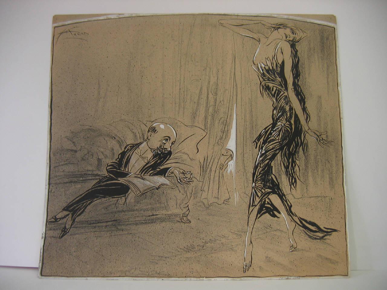 china nera, matita nera e biacca su carta