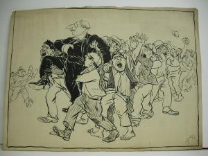 china nera, matita nera e biacca su carta