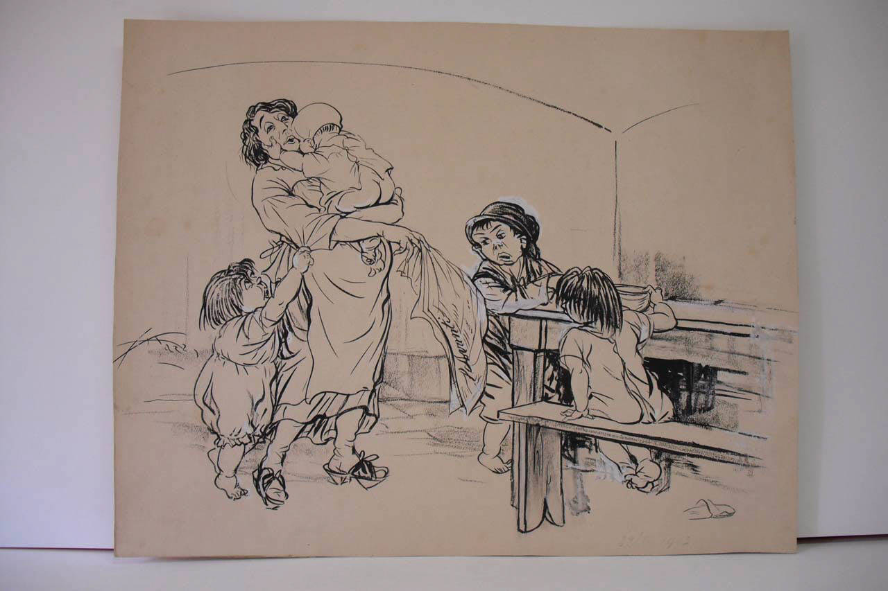 china nera, matita nera e biacca su carta