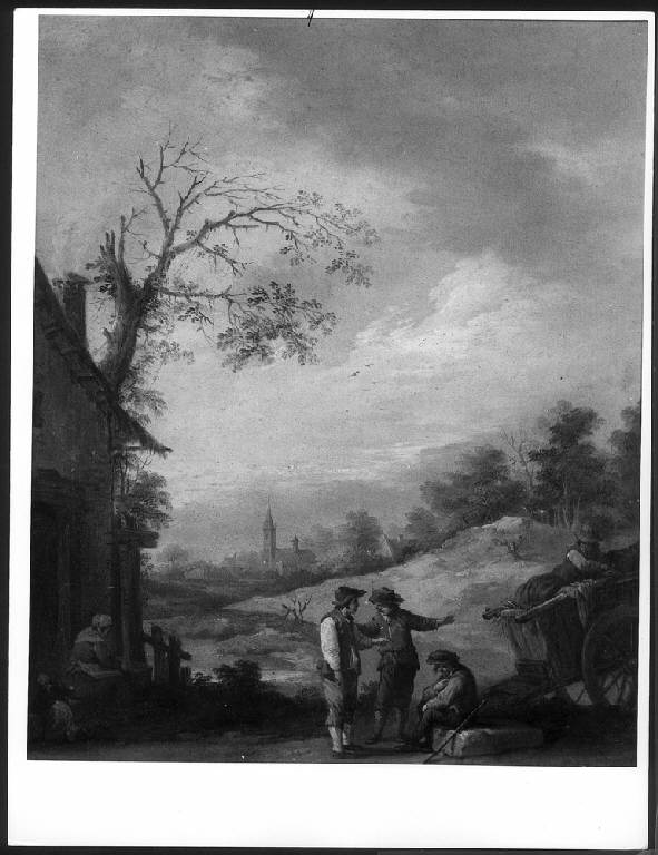 Paesaggio con figure intente a colloquiare. paesaggio rurale con figure