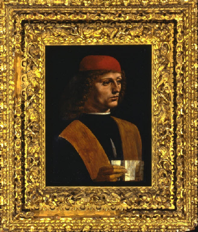 - NOTIZIE STORICO CRITICHE L'uso di una tavola in noce, raro in Lombardia, ricorre nel dipinto raffigurante la "Dama con l'ermellino", conservato al Museo Czartoryski di Cracovia, e nella "Belle Ferroniére" del Louvre. Il dipinto è steso su una preparazione bruno rosata, secondo i precetti leonardeschi. Non si conosce la provenienza dell'opera, anche se diverse ipotesi sono state formulate. Il primo Inventario che ne da notizia in Ambrosiana è quello del 1685, indicando la tavola come ritratto del Duca di Milano. La pubblicazione di un inventario dei dipinti di casa Visconti a Milano, del 1692-1714, che menziona sotto la voce "Leonardo", il ritratto di un Musico, ha portato ad ipotizzare che l'opera potesse trovarsi in casa Visconti, per poi essere donata a Federico Borromeo dopo il 1624, anno del "Musaeum", o anche più tardi, prima del 1685. Nell'Ottocento l'opera è attribuita a Bernardino Luini e quindi ad Ambrogio de' Predis. La critica novecentesca accetta l'attribuzione a Leonardo da Vinci. La perfetta autografia è ribadita più volte da Marani (1985). Nel frattempo Carlo Pedretti collega un passo leonardesco sulla dilatazione delle pupille, in relazione alla diminuzione della luce, alla leggera diversità della pupilla destra rispetto a quella sinistra nel ritratto ambrosiano, come se il personaggio fosse stato colto nell'attimo in cui le pupille si allargano mentre la luce si affievolisce. Il personaggio ritratto è un musicista, come ha rivelato il cartiglio scoperto dalle ridipinture in occasione del restauro del 1905. Forse Franchino Gaffurio, maestro di cappella del Duomo di Milano fino al 1484 al quale alluderebbe la scritta leggibile sul cartiglio "Cant / Ang", riferita al trattato "Angelicum ac divinum opus", pubblicato a stampa dal Gaffurio nel 1508. Altre ipotesi riguardano Jean Cordier di Bruges, alla corte sforzesca fino al 1496, oppure Angelo Testagrossa, maestro di canto di Isabella d'Este, o ancora Atalante Migliorotti, amico di Leonardo nato nel 1466, che l'accompagnò a Milano e che doveva recitare a Marmirolo presso Mantova nel 1490 nell'"Orfeo" del Poliziano. Una recente ipotesi individua nel musico Josquin des Prez, attestato a corte nel 1481, al quale alluderebbero le parole sul cartiglio che dovrebbero venir sciolte in "Contratenor Cantuz Altuz", in riferimento a un mottetto molto frequente nelle opere di Josquin. La datazione proposta è il 1485, sulla base di una affinità con la testa dell'angelo sulla destra della "Vergine delle Rocce" del Louvre, e comunque antecedente la "Dama con l'ermellino" di Cracovia, datata 1488-1489. L'opera si pone come paradigma di una fase transitoria che, dalla "Vergine delle Rocce", conduce alla piena espressione dell'arte di Leonardo nella pittura murale del Refettorio delle Grazie, occupando un posto di tutto rilievo nella sequenza delle opere realizzate a Milano da Leonardo (Marani, 2004)