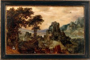 Paesaggio con eremita sulla sinistra. paesaggio con eremita