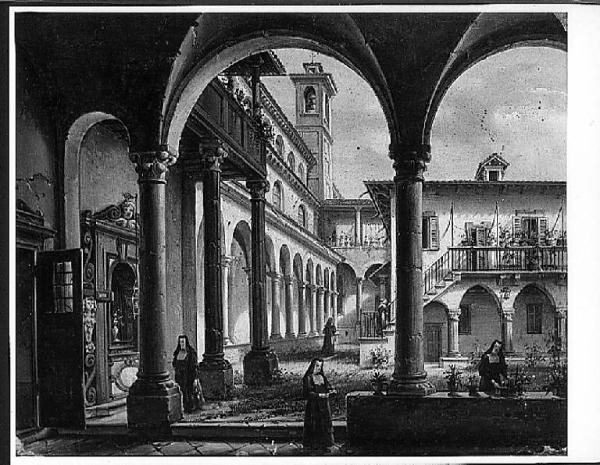 Chiostro con monache. INTERNO DI CONVENTO CON SUORE