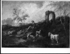 PASTORE CON ANIMALI AL PASCOLO E RUDERI