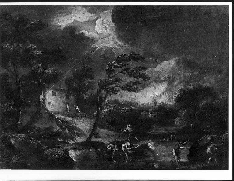 FIUME CON BARCHE E FIGURE SORPRESE DAL TEMPORALE