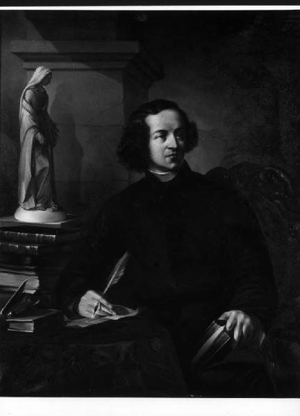 Giovane sacerdote seduto alla scrivania. RITRATTO DI SACERDOTE A FIGURA INTERA