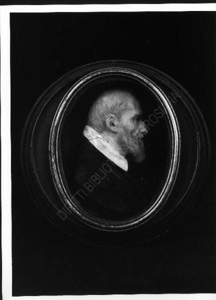 - NOTIZIE STORICO CRITICHE La Jones (1997) identifica questo busto in cera colorata con quello di cui parla Ratti (1967, p. 143): secondo una tradizione attendibile Federico Borromeo avrebbe convinto Filippo Neri a posare per questo ritratto di profilo in cera colorata. Pur non essendo stato possibile reperire documenti, la Jones ipotizza che il ritratto fu commissionato dal Borromeo a Roma, prima della morte del santo nel 1595. Di Filippo Neri Federico Borromeo commissionò anche un ritratto dipinto, sempre di profilo, dopo la morte del santo, per la sua galleria di ritratti. \nDi questo medaglione non si hanno però notizie né nel Museum né nella donazione del 1618.