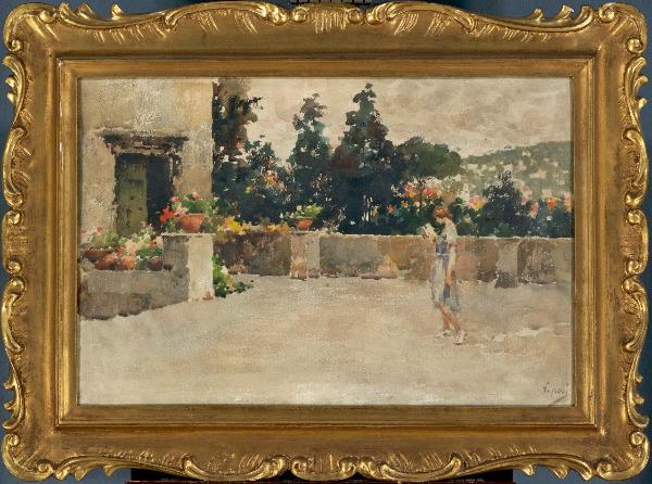 - NOTIZIE STORICO CRITICHE L'acquarello ed il suo pendant (n. 647) appartengono all'ultimo periodo della produzione di Irolli, pittore napoletano formatosi presso l'Accademia di Belle Arti di Napoli che partecipò alle più importanti esposizioni nazionali ed internazionali a partire dagli anni '80 dell'Ottocento (Roma, Torino, Venezia, Londra, Monaco, Berlino, Parigi). Pittore colorista, prima vicino a Morelli e poi influenzato dagli impressionisti, è caratterizzato da uno stile spontaneo e immediato. Non più apprezzato in patria all'inizio del Novecento, continuò ad esporre presso i Salons francesi.