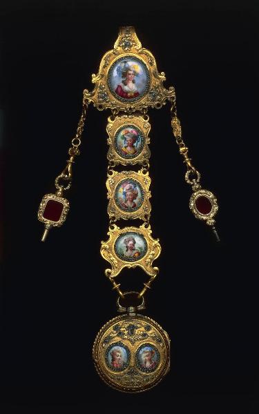 Orologio chatelaine. ritratti con motivi decorativi floreali