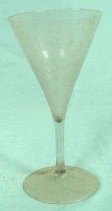 Calice con coppa ad imbuto e stelo cilindrico in vetro pieno. Piede a disco liscio. Segno del pontello.