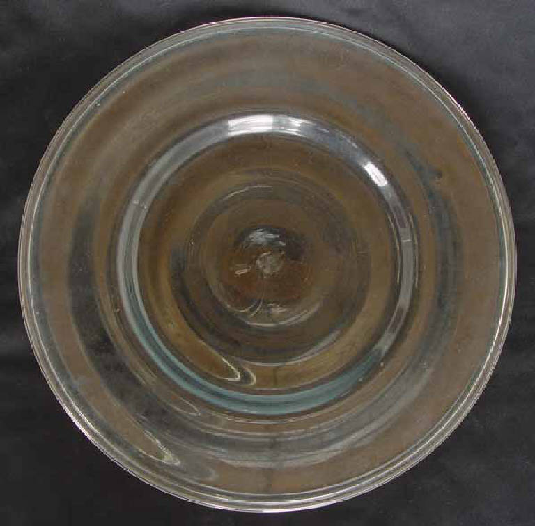 - NOTIZIE STORICO CRITICHE La produzione di piatti di questa forma, senza base applicata, è attestata a Murano a partire dal Quattrocento e sono raffigurati in un'opera di Anonimo Veneto, Cena in Emmaus, del XVI secolo, conservata nel Museo Civico di Montepulciano (BAROVIER MENTASTI 1982, p.86, fig.73). Piatti incolori del Cinquecento tuttora conservati sono generalmente decorati a smalto come due pezzi con stemmi del Museo Civico di Torino (ZECCHIN 1990, p.61).\nIl Castello di Rosenborg a Copenaghen conserva diversi esemplari di forma simile al nostro, generalmente sprovvisti di base, in vetro incolore e a reticello, che fanno parte della collezione di Federico IV di Danimarca, formatasi tra il 1708 e il 1709. Sono di diverse dimensioni e sono menzionati nell'elenco dei doni della Serenissima per la principessa del Piemonte (1720): "piatti da Tovagiol", i più piccoli, "piatti da Cappon" e infine "piatti Reali" (BOESEN 1960, p.56).