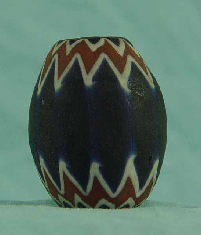 Perla denominata rosetta di forma ovale formata da sei diversi strati di colore. Si parte da quello centrale in vetro bianco, seguono poi il vetro blu, ancora il bianco, il rosso mattone, il bianco e il sesto è il blu che riporta la canna alla sua forma cilindrica.