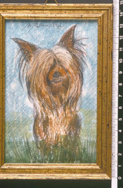 - NOTIZIE STORICO CRITICHE Il piccolo dipinto ritrae "Pepe", il cane di proprietà di Angela Candiani. Nella collezione Lajolo esiste un altro dipinto con le stesse dimensioni e lo stesso soggetto.\nConsiderato che la Candiani e la Ramponi erano legate da un rapporto d'amicizia, è probabile che la Candiani abbia chiesto all'artista di farle un ritratto del suo affezionato cane, oppure che la Ramponi stessa abbia avuto questo pensiero nei confronti dell'amica.\nL'attenzione per il mondo della natura rientra comunque nelle tematiche dell'artista.\nIl dipinto si colloca ovviamente al di fuori della produzione nota della Ramponi e risulta difficile stabilire una datazione precisa.