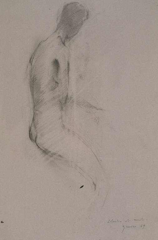 Figura femminile nuda seduta, di profilo