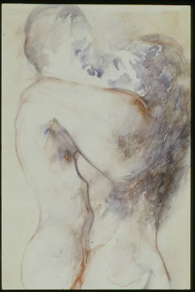 - NOTIZIE STORICO CRITICHE Questo guazzo compare come copertina del romanzo di Davide Lajolo "Come e perchè" nella edizione della Rizzoli (Lajolo, 1978). \nL'opera di Ajmone è datata lo stesso anno e si può ipotizzare che gli sia stata richiesta apposta dall'amico scrittore per la copertina del libro.\nEssa sarebbe poi ovviamente rimasta in mano a Lajolo, che la avrebbe in un secondo momendo regalata ad Angela Candiani.\nIl soggetto è insolito per Ajmone, la cui "paranoica ostinazione" per il corpo nudo si concentra normalmente sul solo corpo femminile.