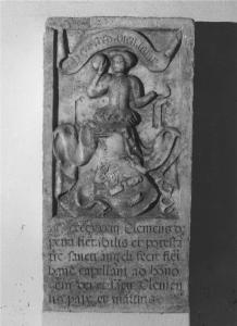 - NOTIZIE STORICO CRITICHE La lapide proviene dalla distrutta chiesa di S. Maria appena fuori dalle mura di S. Angelo. Nel 1492 Filippo Maria Visconti affittò tutto il territorio di S. Angelo per nove anni e per 6.400 fiorini a Clemente de Petra Pavese ( Bascapè 1981, pp. 36 e 183 ). Sono ricordati vari motti, tranne questo che sembra francese, di Clemente de Petra capitano di cavalli in Piemonte, prode di armi e di cuore generoso ( Gelli 1916, p. 1135 )