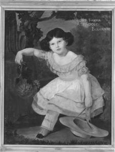 - NOTIZIE STORICO CRITICHE Ritratto convenzionale eseguito da anonimo lombardo del sec. XIX. Eugenia, di cui esiste un ritratto in età avanzata, secondogenita del conte Gian Giacomo Bolognini, ultimo discendente maschile del ramo primogenito e di Eugenia Vimercati, andò sposa nel 1855 al duca Giulio Litta Visconti Arese ( 1822-1891 ) e morì, senza figli, nel 1914 lasciando erede della sua parte di eredità paterna il nipote, figlio dell'unica sorella Clotilde, Gian Giacomo Morando Attendolo Bolognini, restauratore del castello agli inizi del sec. XX
