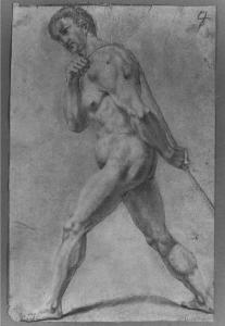 Raffigura un uomo nudo di profilo, giovane e muscoloso mentre sta sforzandosi di trascinare qualcosa.
