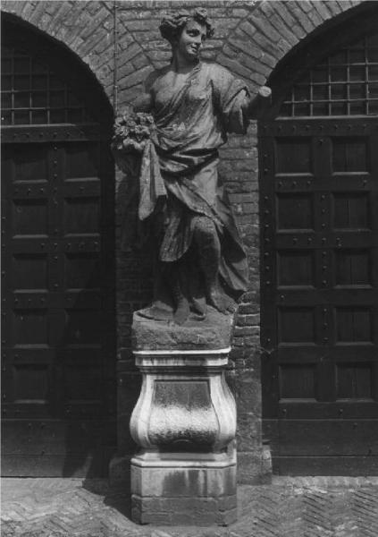 - NOTIZIE STORICO CRITICHE La statua da giardino proviene dal giardino sottostante del Castello ( testimonianza orale dell'anziana custode ). Assai simile ad un'altra, ( cfr. scheda ), con figura allegorica dell'Estate, entrambe guardano nella stessa direzione, mancano pertanto quelle da metter loro vicino
