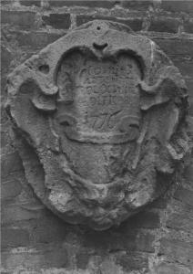 Serie di otto rilievi raffiguranti stemmi nobiliari: tre con aquile, un leone rampante, un'aquila imperiale bifronte; due stemmi non identificati, uno commemorativo (cfr. iscrizione); arricchiti da ricca cornice con cimiero, fogliame, volute o mascheroni