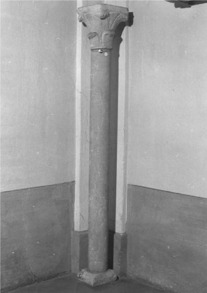 Colonnina a fusto liscio monolitico, con capitello scolpito a doppi ordini di caulicoli, abaco semplice ed echino circolare.