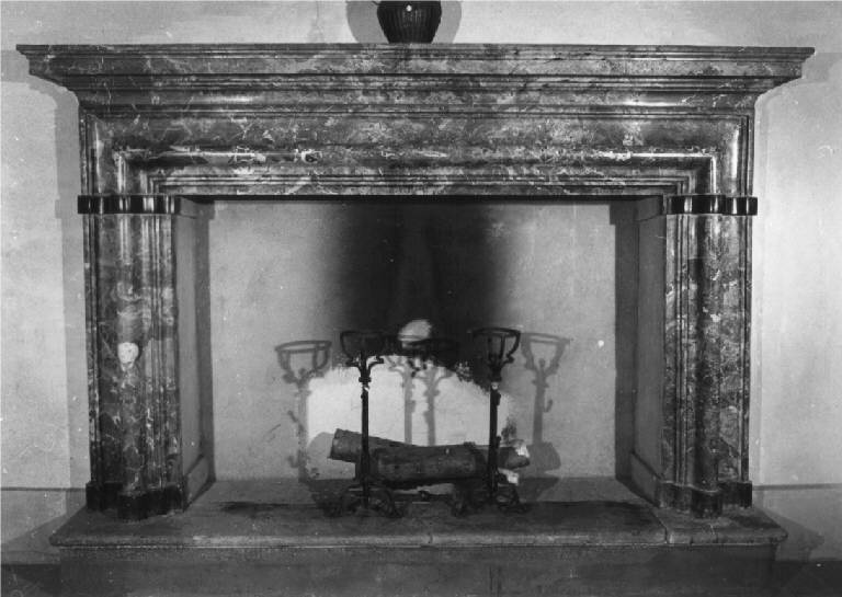 Il camino, ad andamento rettilineo, presenta stipiti laterali decorati, nella parte superiore, da una fascia di marmo nero di Varenna, ampio architrave modanato, rilevato e sporgente.