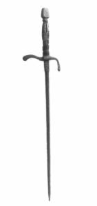 - NOTIZIE STORICO CRITICHE Arma con dimensioni da pugnale da duello, ma probabilmente sfondagiaco per il caratteristico fornimento e la lama forte e appuntita. Un pezzo simile, ma composito, si trova al Museo Poldi Pezzoli, cat. 733 (L. G. Boccia, J. A. Godoi, Museo Poldi Pezzoli, Armeria II, Milano 1986, p. 627 figg. 860 e 861). Si veda anche, in Armeria, il pezzo 473