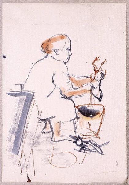 Interno a Melissa. Donna anziana seduta in interno a Melissa