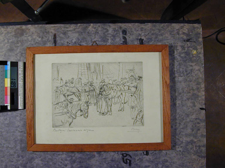 Bretagna. Scaricamento del grano. Scena di vita campestre