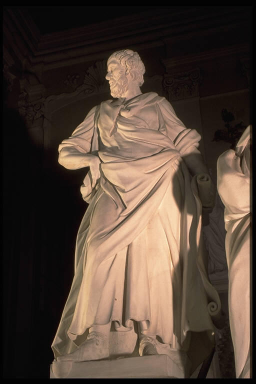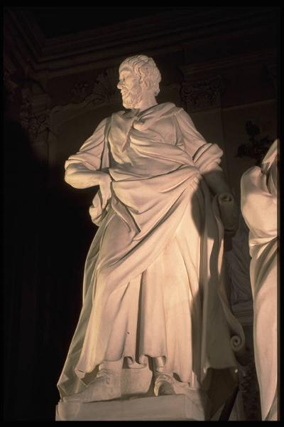 Scultura a tutto tondo collocata a metà dello scalone