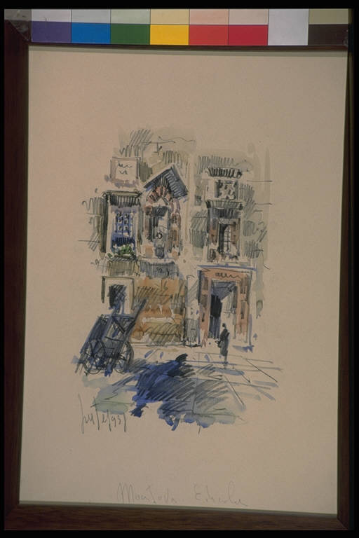 Disegno acquarellato con cornice e vetro