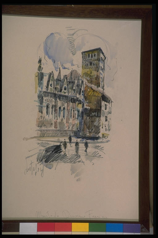 Disegno acquarellato con cornice e vetro