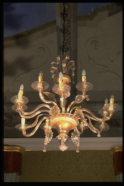 Lampadario in vetro di Murano a dodici bracci e dodici candele