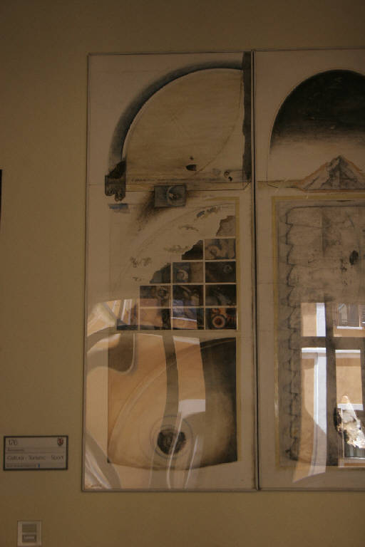 Al centro è stata incollata una riproduzione a stampa di un dipinto del Quattrocento