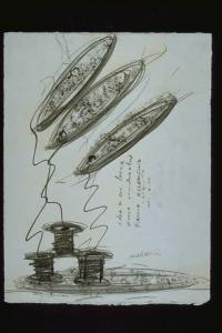 - NOTIZIE STORICO CRITICHE Si tratta del disegno -progetto per un'installazione . E' inseribile nella produzione dell'artista della fine anni Ottanta, caratterizzata dal dispiegarsi della materia, tramite cui l'artista raggiunge la nobile smplicità della geometria. Il metallo, il condensatore, la calamita, tutte presenze di un universo tecnologico e industriale, ritornano a un'austerità antica: quella del segno.\nL'artista nasce a Cagli (Pesaro) nel 1940. Al 1961 risale la sua prima mostra collettiva. Del 1967 è la sua prima personale: invade la Galleria Tartaruga di Roma con un tubo snodabile di ferro nichelato, lungo 150metri, smaltato in giallo agip, che ha trasportato per le strade della città insieme ad un corteo di persone. Nel 1968 a L'Attico di Roma espone opere realizzate con oggetti d'uso o materiali industriali manipolati. Dal 1968 s'intensificano le opere di Mattiacci concepite nei termini di un'azione, in alcune delle quali lo spettatore viene coinvolto nel processo creativo. Nel 1971 espone se stesso a L'Attico con le braccia ed il busto ingessati. Comunicazione, interesse esistenziale ed antropologico per l'altro da se' costituiscono gli ambiti di riflessione di molti lavori realizzati nell'arco degli anni Settanta. Nel 1976 vince il premio Bolaffi e gli viene dedicata una monografia a cura di Maurizio Fagiolo dell'Arco. Nel 1979, ad Atene, espone per la prima volta le Piattaforme. A partire dagli inizi degli anni Ottanta il lavoro dell'artista si sviluppa nella direzione di quelle opere "spaziali-cosmiche-astronomiche". Del 1985 è l'installazione "Torre dei filosofi" nella campagna di Monteluro (Pesaro). Nel 1988 è invitato con una sala personale alla biennale di venezia. Nel 1989, nato da un'idea di Mattiacci, si inaugura il Centro per la scultura contemporanea Torre Martignana di Cagli. Nel 1996 Pesaro gli dedica un'ampia mostra, che inaugura il Centro per le Arti Visive. In questa occasione lungo il vecchio porto viene installata , in permanenza, la scultura "Riflesso dell'ordine cosmico" .