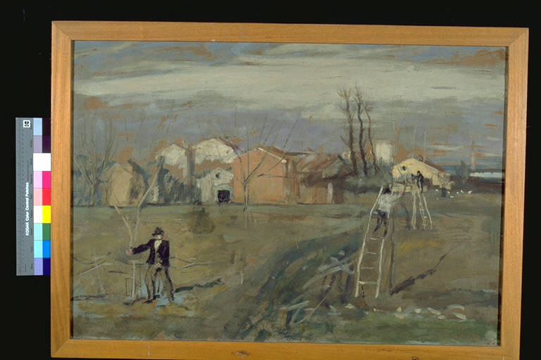 - NOTIZIE STORICO CRITICHE Alla IV edizione del Premio Suzzara (1951) vinse £. 50.000.\nSegno pittorico descrittivo, in cui la pennellata è usata come segno grafico, senza indulgere troppo nei particolari e quindi lontana da una rappresentazione veristica.\nL'artista è in quegli anni attivo a Bondeno.