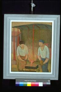 - NOTIZIE STORICO CRITICHE Alla II edizione del Premio Suzzara (1949) vinse un soprabito. \nQuest'opera, per la semplificazione del disegno e la sobrietà della composizione, si ricollega alla pittura del "Novecento"; per il tipo di pennellata e per l'uso di una materia cromatica densa, alla scuola Romana; e, per la qualità cromatica impostata su tonalità chiare, al "Chiarismo"\nL'artista nasce a Mantova nel 1908 e vi muore nel 1992. Soggiorna a Parigi, dove lavora come operaio e nello stesso tempo si interessa alla moderna pittura francese. Alla fine degli anni '20 torna in Italia e inizia a dipingere da autodidatta. A Mantova, negli anni '30, frequenta la bottega di Giordano di Capi, luogo di ritrovo per gli artisti e gli intellettuali mantovani accomunati dall'amore per il paesaggio lombardo e dall'ammirazione per artisti quali Giorgio Morandi, Pio Semeghini, Scipione, Mafai, per i Chiaristi, e Renato Birolli. Fin dall' inizio Ruberti si ispira alla grande tradizione pittorica lombarda (Vincenzo Foppa e Gaudenzio Ferrari) e toscana (Piero della Francesca), che gli apprende attraverso la critica di Longhi. La sua pittura, dagli anni '30 agli anni '60, è influenzata dal "Novecento", dai Chiaristi, dalla Scuola Romana, da "Corrente" e dal "neorealismo". Nel 1939 partecipa alla "Rassegna di arti figurative mantovane dall'800 al '900", orgnizzata a Palazzo Te di Mantova. Alla seconda edizione del Premio Suzzara, dov'è premiato per "Fonditori", conosce Birolli e si lega agli artisti di "Corrente". Fino al 1969 partecipa a tutte le edizioni del Premio. Espone anche al Premio Michetti, alla Quadriennale romana e alla Biennale di Milano. Nel 1953 tiene la sua prima personale a Mantova, alla Casa del Mantegna. Negli anni '70 le sue opere, legate agli stilemi novecentisti, rispecchiano una visione sempre più intimista della realtà. Negli anni '80 predilige i nudi e i paesaggi di montagna caratterizzati da tinte sempre più delicate. Nel 1981 gli viene dedicata un'antologica a Palazzo della Ragione di Mantova, e nel 1988 una personale a Palazzo Te.