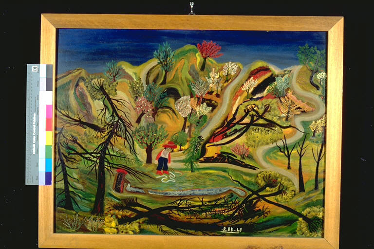 - NOTIZIE STORICO CRITICHE Alla II edizione del Premio Suzzara (1949) vinse una cucina economica.\nQuest'opera, tra le prime eseguite dal pittore, presenta tutte le caratteristiche principali dell'atre naif, come: l'uso di un linguaggio ingenuo, privo di formalismi accademici; l'adozione di una visione aprospettica; la presenza di colori accesi; la descrizione di ogni particolare; come fosse una componente primaria; e la particolare atmosfera di fiaba suggerita dal dipinto.\nL'artista nasce a Gualtieri nel 1907. Durante la Seconda Guerra Mondiale combatte su diversi fronti (Africa Orientale, Spagna, Albania). Rimasto ferito, viene ricoverato per tre anni all'ospedale di Sant'Anna di castelnuovo Monti. Inizia a dipingere nel 1949 col sostegno di Mazzacurati , che organizza la prima mostra personale del pittore a Roma. Solitamente Rovesti si firma con la sigla "Pittore contadino ce." ("ce." sta per celebre). Egli si riterrà sempre "originale", in contrapposizione ed in polemica con gli altri pittori naifs, che riteneva fasulli. Sul retro della tela racconta il suo mondo, il Po e la sua campagna, con brevi scritti esplicativi. Nei suoi quadri predominano sempre un'atmosfera fiabesca, un cromatismo acceso ed un senso profondo del decorativismo. In tempi più recenti, terrorizzato dalla minaccia della bomba atomica, ha dipinto gli effetti devastanti da essa prodotti, ispirandosi alle scene dell'alluvione del Po e a ciò che aveva provocato nei suoi luoghi.
