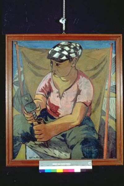 - NOTIZIE STORICO CRITICHE Al III° Premio Suzzara (1950) vinse una forma di grana.\nIl disegno è caratterizzato da un segno incisivo e da una certa tendenza alla semplificazione. L'immagine risulta piuttosto appiattita. Le ombre sono costruite solidamente. Il linguaggio artistico è lontano da una resa "veristica" della realtà, ma, comunque, estremamente leggibile. L'opera, per queste caratteristiche, è inseribile nella corrente più "modernista" della pittura realista degli anni '50.\nL'artista è nato a Genova nel 1923. Le notizie biografiche su di lui giungono solo fino agli anni '50. Attorno al 1958 soggiorna per un periodo a Parigi. Mostre personali: Galleria Bergamini di Milano (1954); Galleria Il Camino di Roma (1955); Palazzo Carignani a Torino (1956); Galleria delle Ore a Milano (1957). Partecipa a due edizioni della Biennale di Venezia (1948 e 1956) ed alla Quadriennale di Roma del '55.