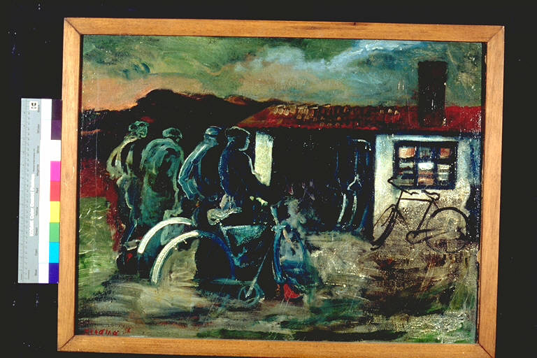 - NOTIZIE STORICO CRITICHE Al XI° Premio Suzzara (1956) vinse una forma di formaggio grana, una cassetta di Cinzano, una parure di penna e matita, mille mattoni e lire 30.000\nSi tratta di uno studio caratterizzato dall'uso di una pennellata molto libera che tende alla smaterializzazione delle forme.\nL'artista nasce a Cervignano del Friuli (Udine) nel 1924. Compie gli studi al collegio di Tolmino, oggi in Slovenia. Nel 1943 espone alla Fondazione Bevilacqua di Venezia. L'anno dopo, sempre a Venezia, consegue la maturità artistica e poi frequenta la Scuola di architettura all'Accademia. Nel '46 a Udine incontra Pier Paolo Pasolini al quale rimarrà sempre legato da una forte amicizia. Nel '47 esegue la serie delle crocefissioni. Nel '48 espone alla Biennale di Venezia ed alla Galleria del Cavallino. Illustra il libro di poesie di Pasolini "Dov'è la mia patria". Sempre in questi anni si unisce al gruppo dei realisti (Guttuso, Pizzinato, Maltese, De Micheli, De Grada, Treccani, Francese) elaborando con essi le formulazioni teoriche del movimento. Nei primi anni '50 esegue opere di esplicito impegno politico di impianto ancora post-cubista. Nel 1953 gira il lungometraggio "Primo Maggio a Cervignano". Partecipa alle più importanti manifestazioni artistiche internazionali come la Biennale di Venezia, quella di San Paolo del Brasile e la Triennale di Milano. Nel 1955 Pasolini dedica il poemetto "Quadri Friulani" alla sua pittura. Dal 1957 Zigaina si stacca dal "neorealismo" per approdare negli anni '60 ad un'arte più ermetica, dove la realtà in continua trasformazione si mescola al sogno (serie delle "Ceppaie" e delle "Astronavi"). Ancor oggi continua ad esporre in personali ed in manifestazioni artistiche sia in Italia che all'estero. Collabora con Pasolini ai film "Teorema" e "Decameron". Nel 1989 gli viene dedicata un'importante antologica al Palazzo dei Diamanti di Ferrara. Nel 1992 , al Teatro Nazionale di Siviglia, cura la regia di Orgia di Pasolini sul quale, inoltre, scrive tre libri.