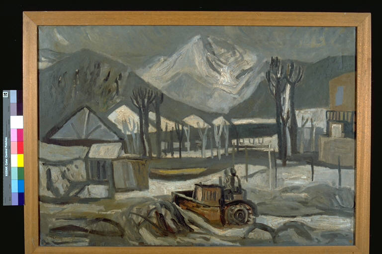 - NOTIZIE STORICO CRITICHE Al VI° Premio Suzzara (1953) vinse un puledro e libri d'arte.\nIl paesaggio è descritto in maniera molto essenziale e con un disegno semplificato. Quest'opera appartiene alla "fase paesaggistica" dell'artista dei primi anni '50.\nL'artista nasce a Venezia nel 1903 e vi muore nel 1977. Frequenta l'Istituto Tecnico Statale di Venezia e la scuola serale dell'Istituto d'Arte. Frequenta i corsi di decorazione pittorica e di illustrazione del libro all'Istituto Statale d'Arte.Nel 1923 vince ex-aequo il I premio al concorso per l'illustrazione della rivista "El Hogar" di Buenos Aires. Dal 1925 al 1938 pubblicherà i suoi disegni sulla rivista "Le Tre Venezie". Nel 1927 tiene l sua prima personale di bianco e nero alle Botteghe d'Arte di Venezia. Nel 1928 partecipa alla XVI Biennale di Venezia. Inizia l'attività di insegnante di arti grafiche. Nel 1930 presenta la sua prima personale di pittura, sempre alle Botteghe d'Arte di Venezia. E' legato agli artisti della Scuola di Burano. In questi anni si dedica maggiormente alla pittura. Partecipa alle Biennali di Venezia del 1934 e del 1936. Continua la sua attività di illustratore per libri e riviste. Dal 1943 ha inizio la sua partecipazione alle Quadriennali di Roma. Dal 1946 iniziano i riconoscimenti: Premio Burano; Premio Volpi alla XXV Biennale di Venezia nel 1950; Premio Provincia di Venezia alla XXVI Biennale del 1952; Premio Suzzara nel 1949 e nel 1953. Dopo un viaggio a Parigi si dedica al paesaggio, in particolare a quello di Asolo. Nel 1954 e nel 1956 espone alla II e alla III Biennale di Disegno e Incisione di Forlì. Le sue opere grafiche entrano nelle pubbliche istituzioni. Durante gli anni '60 continua ad esporre in importanti manifestazioni artistiche. Nel 1970 la Galleria Gianferrari di Milano presenta una sua rassegna di sessanta disegni eseguiti tra il 1958 e il 1968.