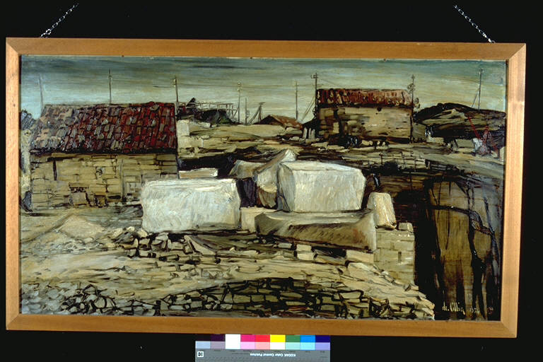 - NOTIZIE STORICO CRITICHE Alla VIIa edizione del Premio Suzzara (1954) vinse una macchina da scrivere, un prosciutto e kg. 10 di pasta alimentare.\nIl paesaggio è rappresentato con molta sobrietà, sia per la scelta dei toni che per il rigore della composizione. La figura umana è completamente assente , perciò è attraverso la descrizione dell'ambiente che l'artista riesce a trasmettere l'idea di una condizione di lavoro. L'uso di una materia cromatica densa e corposa, coperta da uno spesso strato di vernice, accentua l'effetto materico del dipinto.\nL'artista nasce a Treppo Carnico (UD) nel 1910 e muore ad Udine nel 1993. Inizia la propria attività come decoratore a Udine. Solo dopo il 1940 si dedica totalmente all'attività di pittore, dopo una formazione da autodidatta. Le sue prime personali vengono allestite a partire dal 1942.Fin dalle sue prime opere si comprende il legame dell'artista con la natura e il senso plastico delle sue figurazioni. Il suo realismo trova come ambientazioni ideali i luoghi del Carso triestino, che si identificano pienamente nei toni sobri e nelle rigorose linee compositive della sua pittura. I paesaggi di De Cillia sono isolati, l'uomo vi è assente. La natura che descrive è fatta di rocce calcaree e di arbusti polversi, di materie scabre e di pietre, diventando, così, trasfigurazione profonda e amara dell'esistenza umana. In seguito la sua pittura tenderà sempre più ad esaltare gli aspetti strutturali della forma, prendendo le distanze da una pura descrizione. Ciò tecnicamente lo raggiunge attraverso l'uso della spatola. Negli anni Sessanta la sua pittura si avvicina all'Informale, sia per la matericità che per la qualità cromatica dal carattere non naturalistico, e diviene pittura di poesia e di memoria.