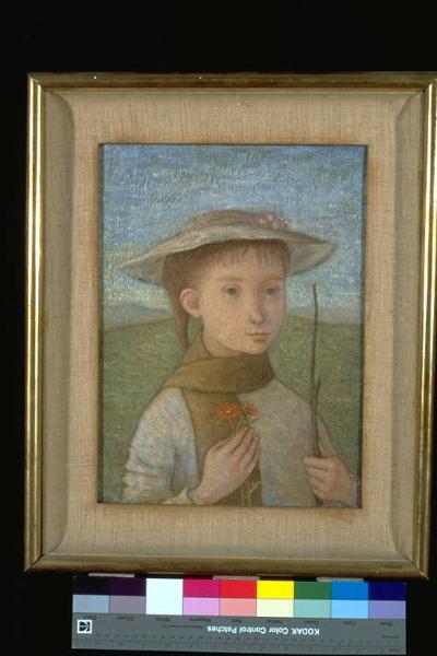 Pastorella. Ritratto di fanciulla con cappello, fiori e rametto