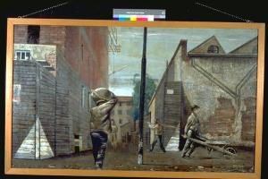 - NOTIZIE STORICO CRITICHE Al X° Premio Suzzara (1957) vinse L. 80.000 in contanti e una forma di formaggio grana.\nRappresentazione oggettiva della realtà e uso di un impianto narrativo secondo i canoni del realismo sociale della metà degli anni '50, che si riallacciava a quello di fine Ottocento .\nL'artista nasce a Venezia nel 1905. Frequenta l'Accademia di Venezia e ha come insegnante Virgilio Guidi. Presenta la sua prima personale nel 1930 nella città natale. Nel 1931 si trasferisce a Milano, dove realizza gli affreschi per la villa Uglietti ed espone in varie personali. Partecipa a varie rassegne collettive fra cui la Biennale di Venezia, la Quadriennale di Roma e la Biennale di Milano. Sempre negli anni Trenta conosce Birolli, Manzù, Sassu e collabora con Guttuso alla rivista "Orpheus", con disegni satirici antifascisti. Viene condannato a due mesi di confino in seguito all'esposizione, nella Galleria Tre Arti, di una sua opera giudicata "offensiva" ("La passeggiata liberale"). Assieme a Birolli partecipa come partigiano alla Resistenza. Dopo la guerra tiene varie personali alle Gallerie La Colonna, Bergamini, Del Naviglio. Inoltre è presente a varie mostre in Italia e all'estero. Nel 1979 il Comune di Milano gli ha dedicato una mostra antologica al Museo di Milano.
